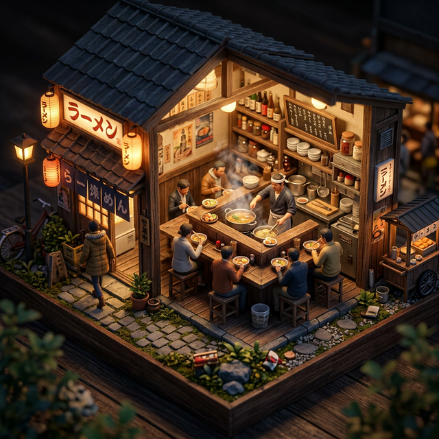 Complex scene generation: Nano Banana 2 renders intricate isometric dioramas with accurate spatial relationships, lighting, and miniature details.